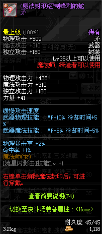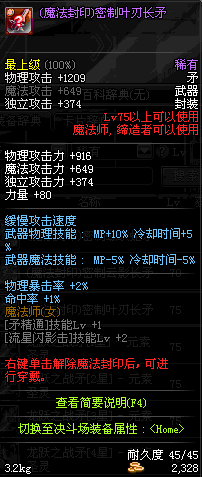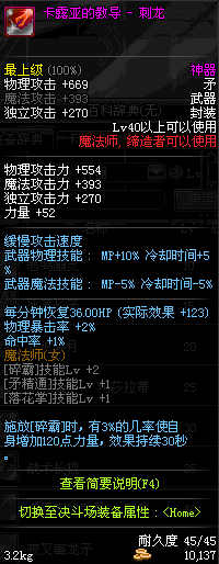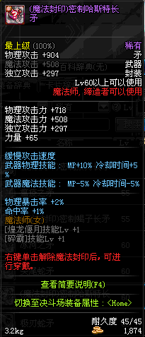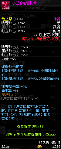| 45 | 小巴的电动长矛 | *Lv45~51普通地下城怪物掉落 *在加百利的神秘商店购买 |