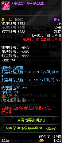 | 35 | 战术长棍 | *Lv34~41普通地下城怪物掉落 *在加百利的神秘商店购买 |