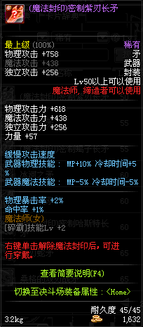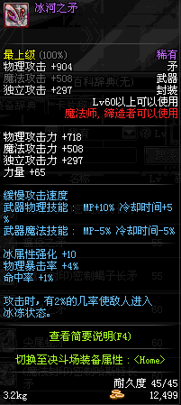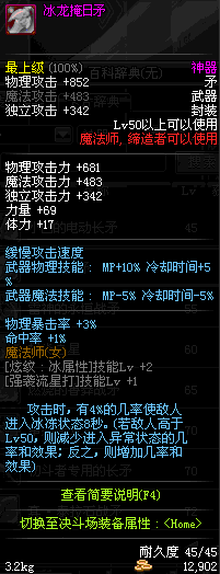 | 50 | 冰龙掩日矛 | *Lv50~56普通地下城怪物掉落 *在加百利的神秘商店购买 |