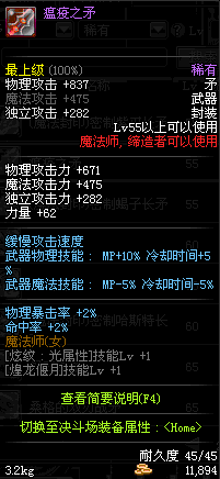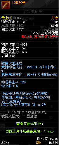 | 55 | 却邪战矛 | *Lv54~61深渊地下城怪物掉落 *在NPC沉默之克雷娅的物品店购买 |