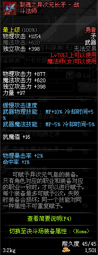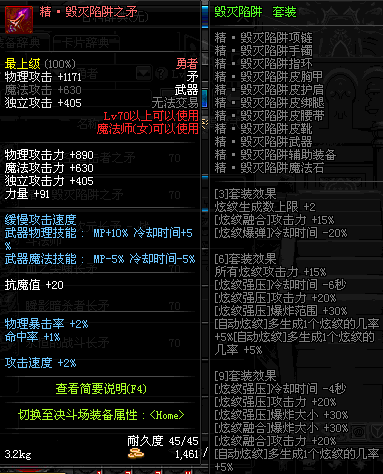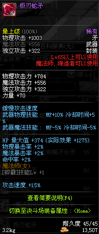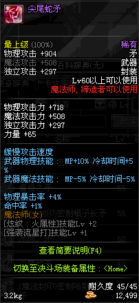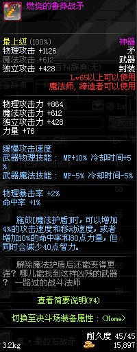 | 65 | 燃烧的鲁莽战矛 | *Lv65~71普通地下城怪物掉落 *在加百利的神秘商店购买 |