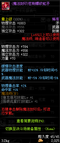 | 85 | (魔法封印)密制战争长矛 | *Lv85~91普通地下城怪物掉落 *完成[黑色迷雾]任务 |