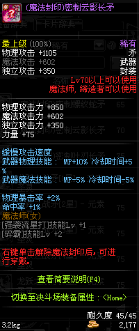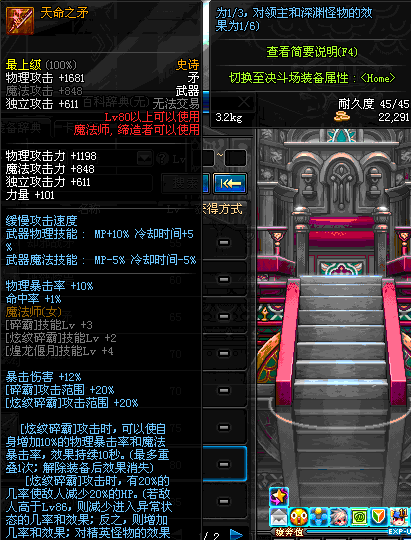 | 80 | 命运轮回之矛 | *Lv80~86普通地下城怪物掉落 *在加百利的神秘商店购买 |