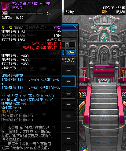 | 75 | 龙跃之战矛[3星] – 伊斯塔战灵 | *完成二次觉醒任务后可以从NPC小铁柱处获得此道具。 | ||