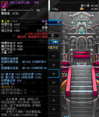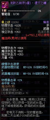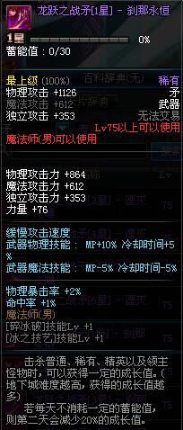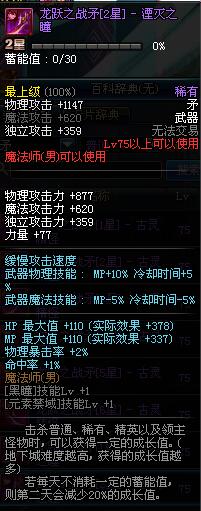 | 75 | 龙跃之战矛[1星] – 月蚀 | *完成二次觉醒任务后可以从NPC小铁柱处获得此道具。 | ||