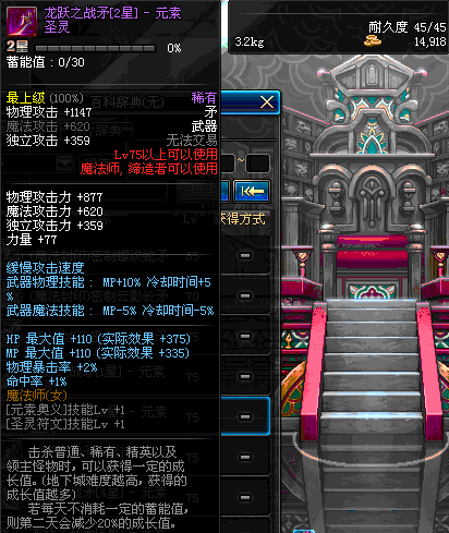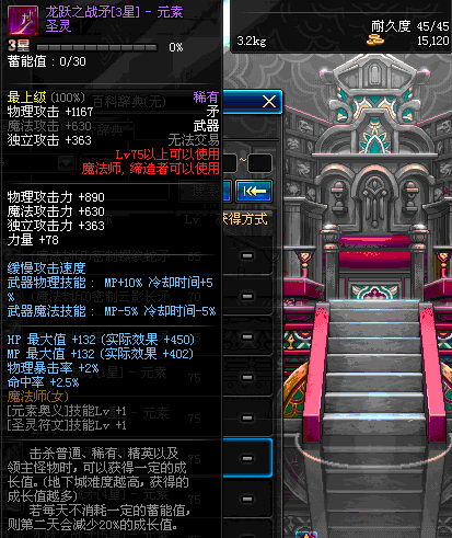 | 75 | 龙跃之战矛[3星] – 元素圣灵 | *完成二次觉醒任务后可以从NPC小铁柱处获得此道具。 | ||