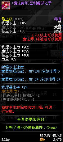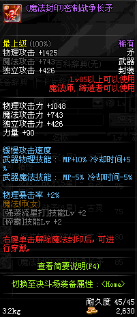 | 80 | (魔法封印)密制虔诚之矛 | *Lv80~86普通地下城怪物掉落 |