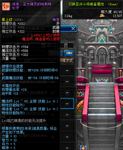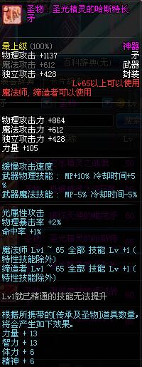 | 65 | 圣物 : 圣光精灵的哈斯特长矛 | *Lv65~71普通地下城怪物掉落 |
