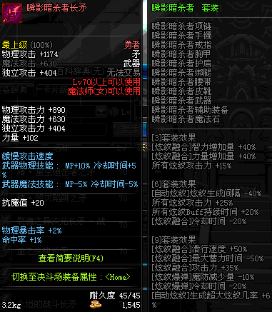 | 辅助装备: | 全职业 鬼剑士 女鬼剑 女格斗 男格斗 神枪手 女枪手 魔法师 男法师 圣职者 暗夜使者 守护者 |