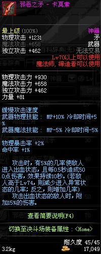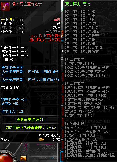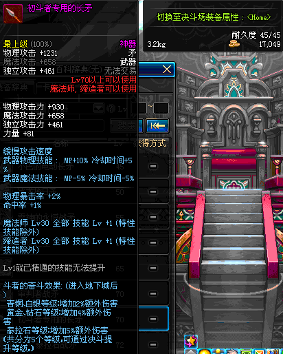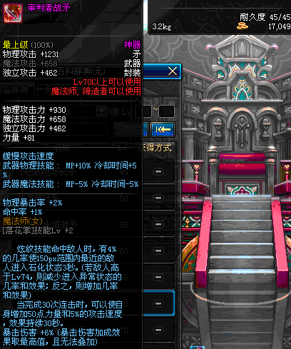 | 70 | 审判者战矛 | *Lv70~76普通地下城怪物掉落 *在加百利的神秘商店购买 |