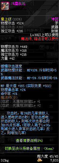 | 30 | 风雷战戟 | *Lv29~36普通地下城怪物掉落 *在加百利的神秘商店购买 |