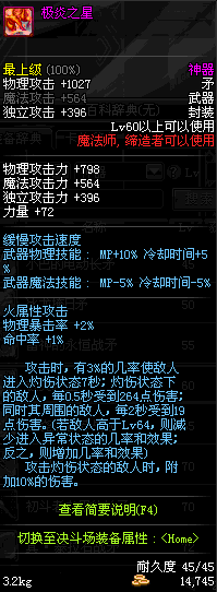 | 60 | 极炎之星 | *Lv58~66普通地下城怪物掉落 *在加百利的神秘商店购买 |