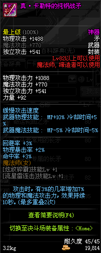 | 82 | 真·卡勒特的纯钢战矛 | *设计图(70LV以上普通地下城 登场的NPC加百利 出售) *卡勒特的纯钢战矛 → 用远古神器装备进化书升级(NPC船长鲁特 出售) |
