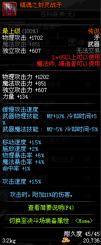 | 85 | 镇魂之封灵战矛 | *时空之门地区 - 吟游诗人艾丽丝 出售 (镇魂之石×100) *购买镇魂武器礼盒(低级镇魂之石×140) |