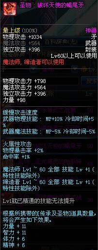 | 60 | 圣物 : 破坏天使的蝎尾矛 | *Lv58~66普通地下城怪物掉落 |