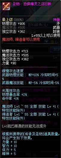 | 55 | 圣物 : 恐惧精灵之逐日戟 | *Lv53~61普通地下城怪物掉落 |