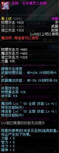 | 50 | 圣物 : 玄冰精灵之战戟 | *Lv50~56普通地下城怪物掉落 |