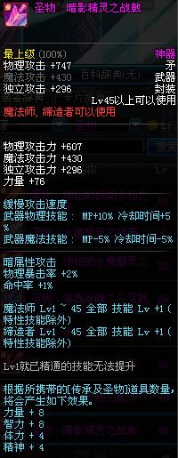 | 45 | 圣物 : 暗影精灵之战戟 | *Lv45~51普通地下城怪物掉落 |