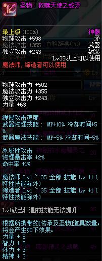 | 35 | 圣物 : 救赎天使之蛇矛 | *Lv34~41普通地下城怪物掉落 |