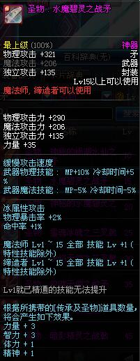 | 15 | 圣物 : 水魔碧灵之战矛 | *Lv13~21普通地下城怪物掉落 |