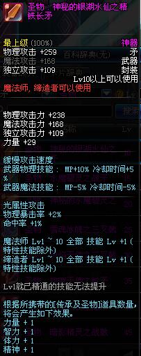 | 20 | 圣物 : 神秘的水魔碧灵之战矛 | *Lv19~26普通地下城怪物掉落 | ||