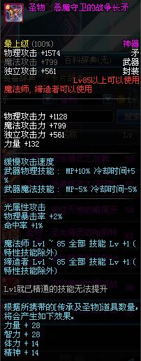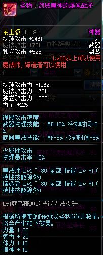 | 80 | 圣物 : 烈域魔神的虐诚战矛 | *Lv80~86普通地下城怪物掉落 | ||