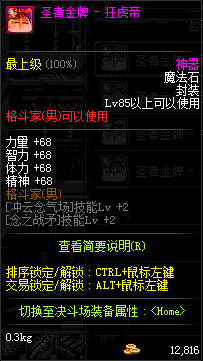 | 辅助装备: | 全职业 鬼剑士 女鬼剑 女格斗 男格斗 神枪手 女枪手 魔法师 男法师 圣职者 暗夜使者 守护者 |