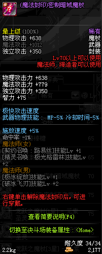 | 70 | 圣物 : 暮冰精灵的暗域魔杖 | *Lv70~76普通地下城怪物掉落 |