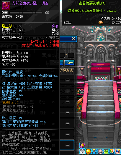 | 75 | 龙跃之魔杖[6星] – 月蚀 | *完成二次觉醒任务后可以从NPC小铁柱处获得此道具。 | ||