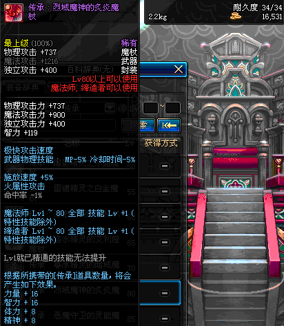 | 80 | 圣物 : 烈域魔神的炙炎魔杖 | *Lv80~86普通地下城怪物掉落 | ||