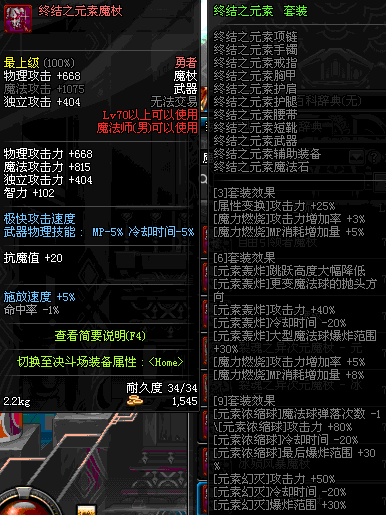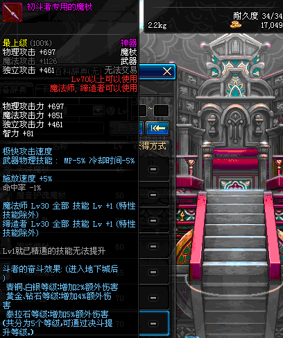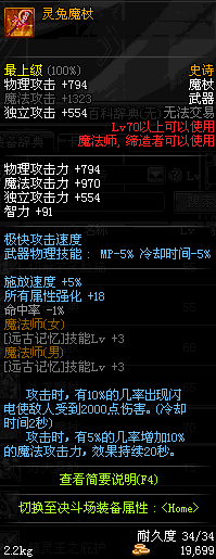| 55 | 伊莎杜拉的元素魔杖 | *伊莎杜拉 掉落(地下城: 无尽的噩梦) *在NPC敏泰的物品店购买(阿拉德陨石×330) |