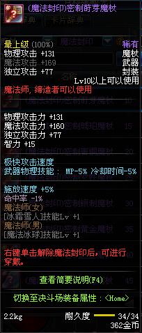 | 30 | 圣物 : 雪魂冰魄之银制魔杖 | *Lv29~36普通地下城怪物掉落 |