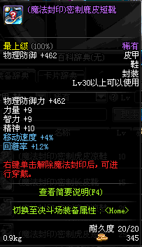 | 15 | (魔法封印)密制长皮靴 | *Lv13~21普通地下城怪物掉落 *完成[[魔法封印防具]天才武道家的试炼(3/3)]任务 *使用Lv13~21怪物掉落的设计图进行制作 |