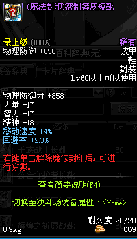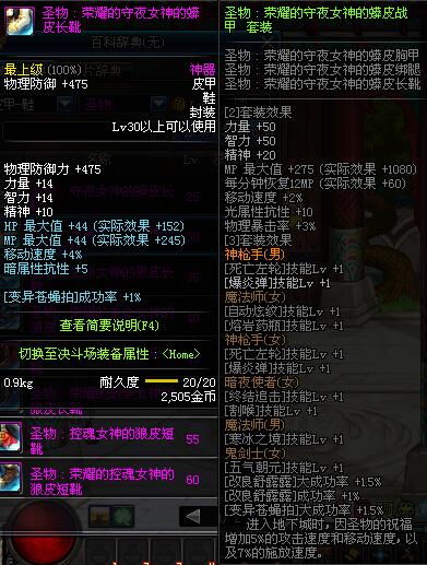 | 60 | 圣物 :荣耀的控魂女神的狼皮短靴 | *Lv58~66普通地下城怪物掉落 |