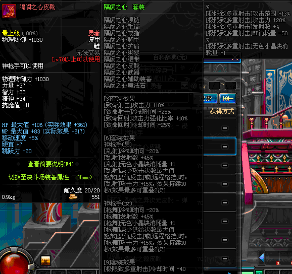 | 鬼剑士 | 神枪手 | 格斗家 | 魔法师 | 圣职者 | 暗夜使者 | 布甲 | 皮甲 | 重甲 | 轻甲 | 板甲 | 饰品 |
