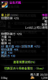 | 45 | 圣物 :战争女神的狼皮长靴 | *Lv45~51普通地下城怪物掉落 |