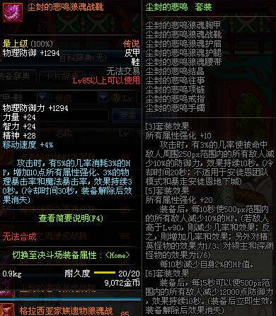 | 85 | 尘封的悲鸣狼魂战靴 | *昨日之巴斯顿 掉落 (在远古地下城里出没。) *从NPC鲁特的物品店出售的[尘封的悲鸣防具礼盒]中获得 |