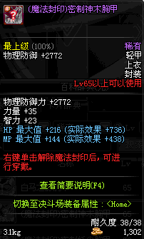 | 65 | 圣物 :摩羯守护神的橡木胸甲 | *Lv65~71普通地下城怪物掉落 |