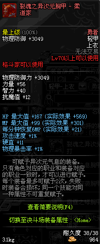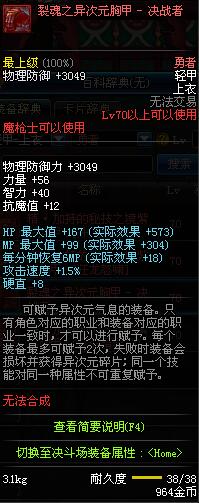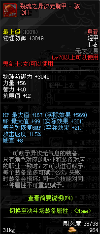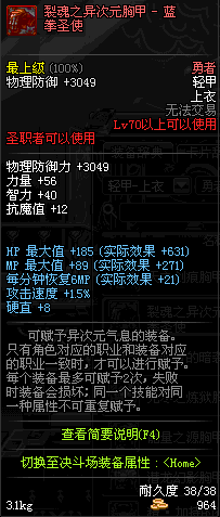 | 70 | 裂魂之异次元胸甲 - 剑魂 | |||