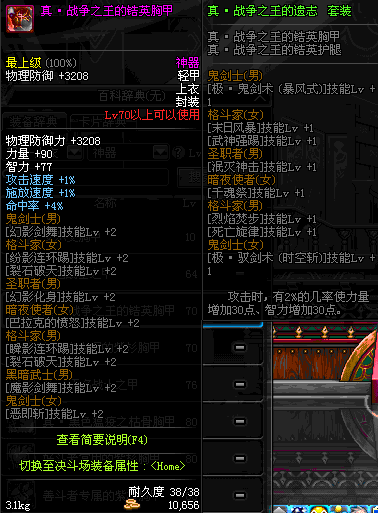 | 辅助装备: | 全职业 鬼剑士 女鬼剑 女格斗 男格斗 神枪手 女枪手 魔法师 男法师 圣职者 暗夜使者 守护者 |