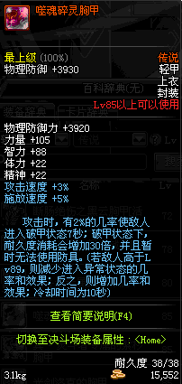 | 85 | 圣物 :荣耀的天马守护神的橡木胸甲 | *Lv85~91普通地下城怪物掉落 | ||