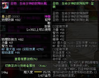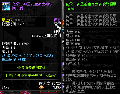 | 35 | 圣物 :生命女神的软陶长靴 | *Lv34~41普通地下城怪物掉落 |