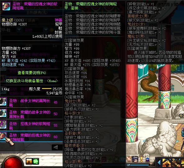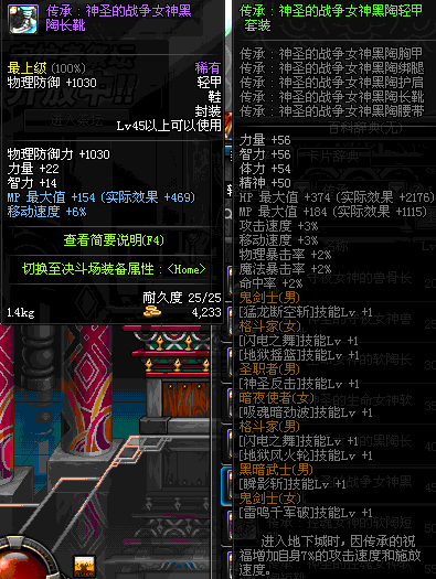 | 45 | 圣物 :战争女神的黑陶黑陶长靴 | *Lv45~51普通地下城怪物掉落 |