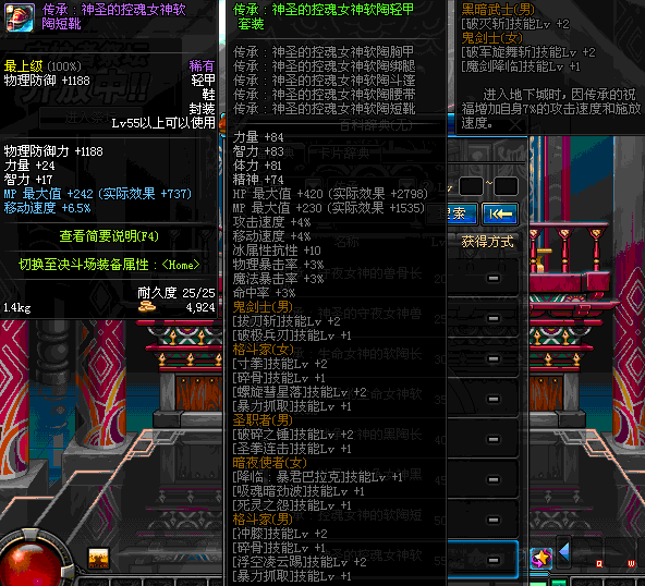 | 55 | 圣物 :控魂女神的软陶短靴 | *Lv53~61普通地下城怪物掉落 |
