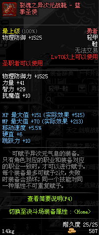 | 70 | 裂魂之异次元战靴 - 剑魂 | |||
