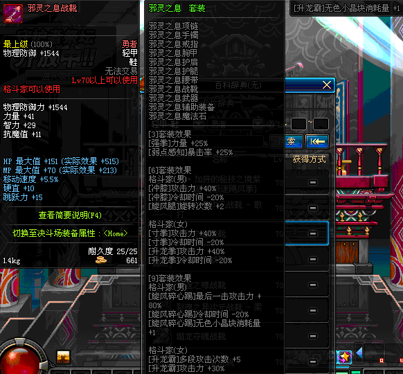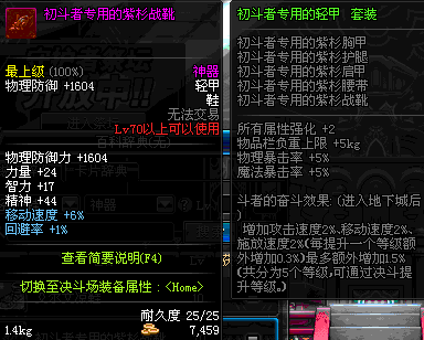 | 70 | 初斗者专用的紫杉战靴 | *决斗场-爱莎&鹰吉&风铃 出售 | 初斗者专用的 套装 | |