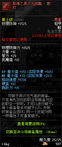 | 70 | 裂魂之异次元战靴 - 散打 | |||