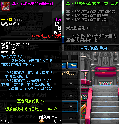 | 76 | 真 · 尼尔巴斯的石陶长靴 | *设计图(70LV以上普通地下城 登场的NPC加百利 出售) *尼尔巴斯的石陶长靴 → 用远古神器装备进化书升级(NPC船长鲁特 出售) |