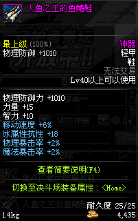 | 40 | 人鱼之王的鱼鳍鞋 | *人鱼之王图雷 掉落(人鱼的国度) *伊莎杜拉 出售(阿拉德陨石×119) |