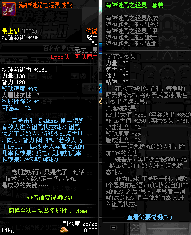 | 85 | 海神谜咒之轻灵战靴 | *昨日之巴斯顿 掉落 (在远古地下城里出没。) *从NPC鲁特的物品店出售的[海神谜咒防具礼盒]中获得 *船长鲁特 出售 (深海诅咒 : 解咒法×60) |